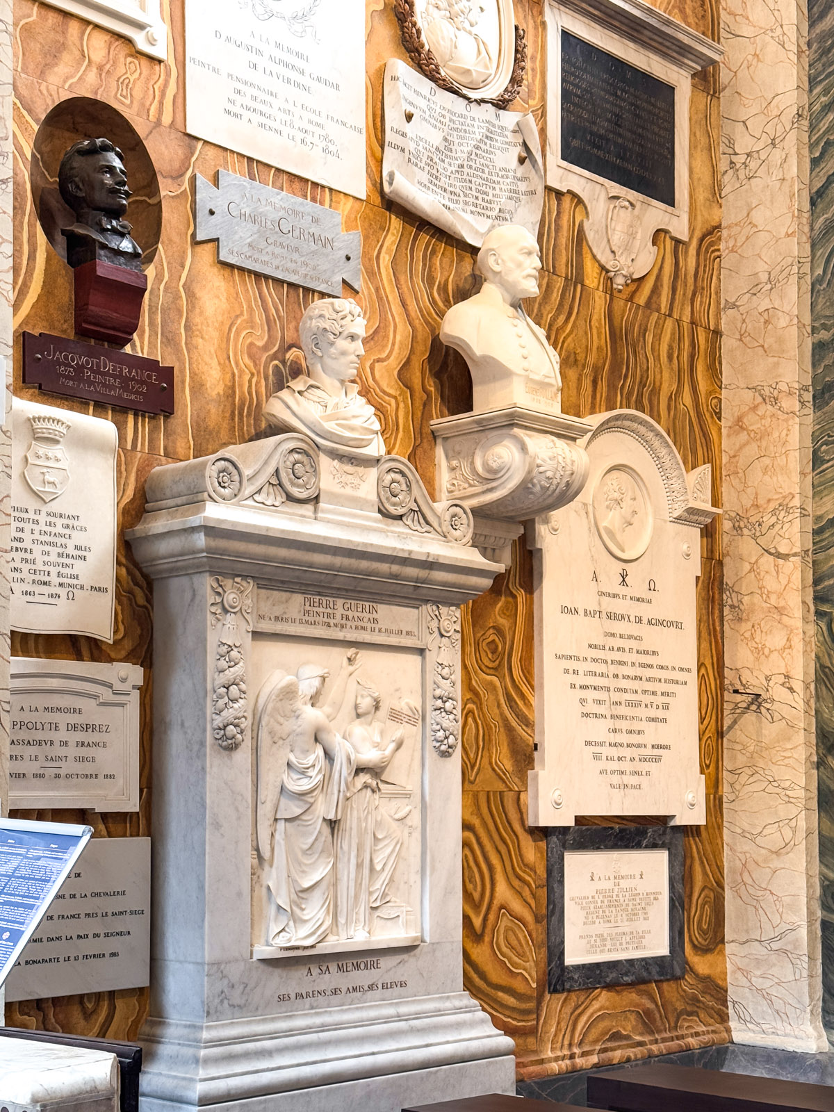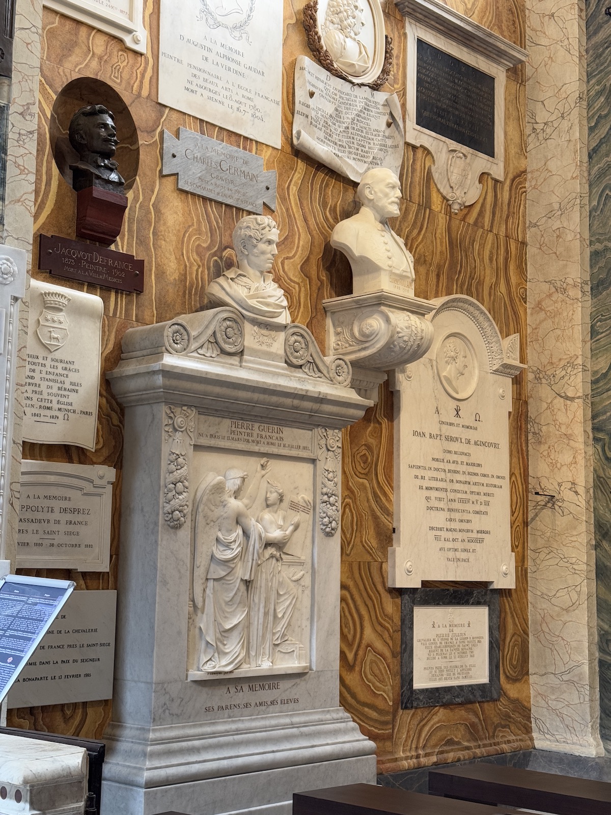 La Chiesa dei Francesi contiene molti altri tesori come lo splendido organo, costruito da Joseph Merklin nel 1881, e alcune tombe, tra cui quelle di Pauline de Beaumont, fatta costruire dal suo amante François-René de Chateaubriand, del cardinale François Joachin de Bernis, ambasciatore dei re Luigi XV e Luigi XVI, e di Frédéric Bastiat, economista e scrittore liberale del XIX secolo.