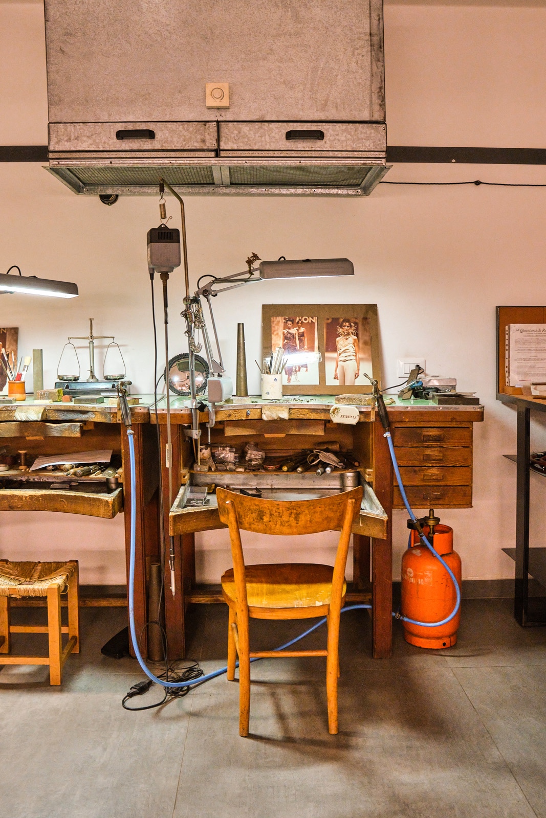 Renovated in 2018, the atelier hosts the showroom and the laboratory where the jewels come to life. The design begins with a pencil sketch by Francesca Neri Serneri, the creative director.