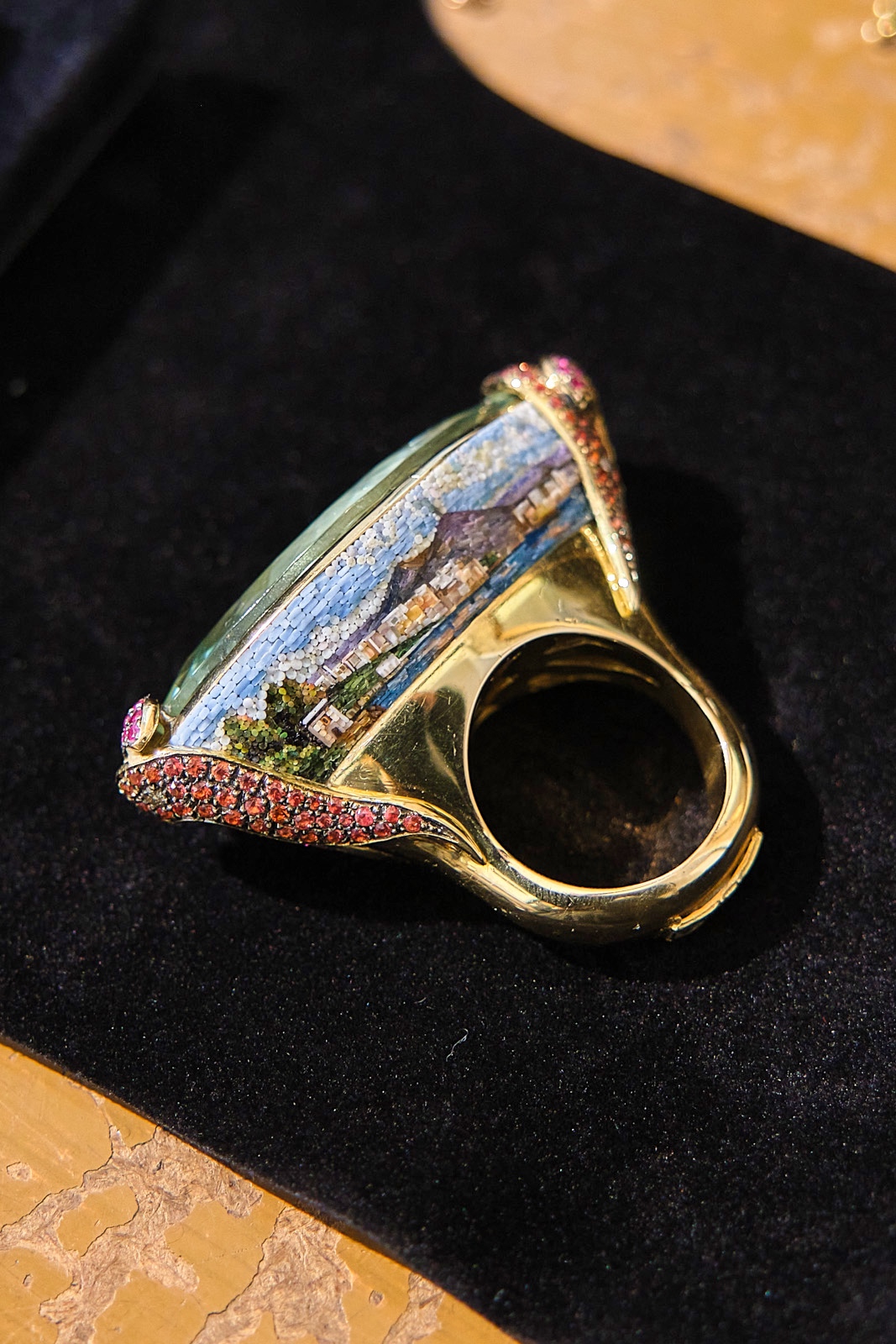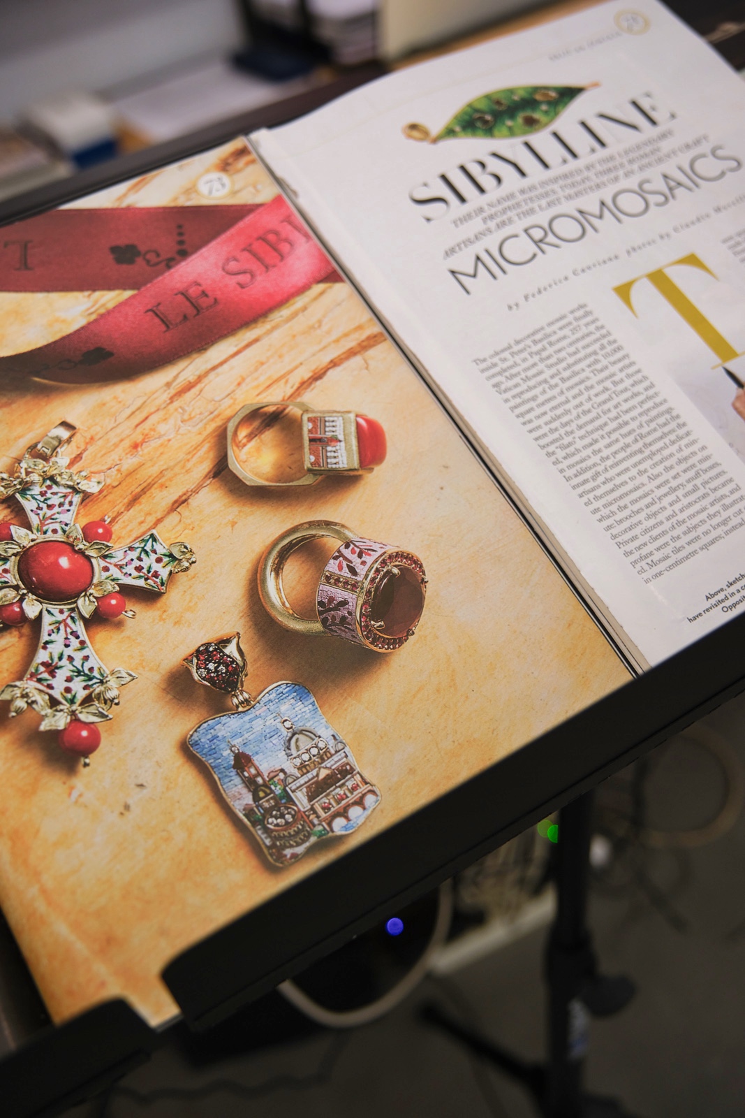 In Rome, the Le Sibille atelier is the only artisan in the city who passes on the ancient goldsmith technique of Roman Minute Mosaic through the creation of unique jewels that interpret the glories of the Grand Tour.